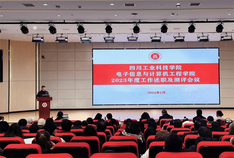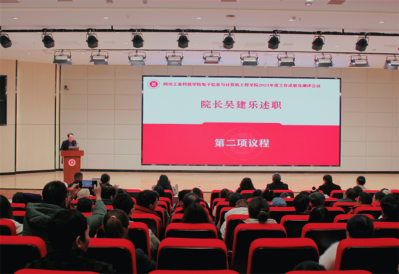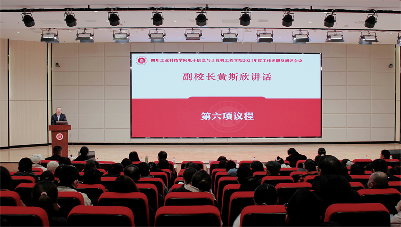 1月3日下午,电子信息与计算机工程学院在C区报告厅召开2023年度工作述职暨测评大会。学校副校长黄斯欣出席本次大会,学生处副处长蔡明、电子信息与计算机工程学院院长吴建乐、执行院长龙厚彦、党总支副书记马娟花、副院长宋彦良、人事处范彩芸及全院教师参加会议,会议由学院党总支宣传委员、第一党支部书记田小东主持。