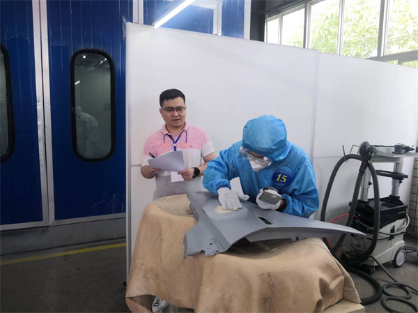 钟全能老师担任汽车车身修复(喷涂)赛项裁判