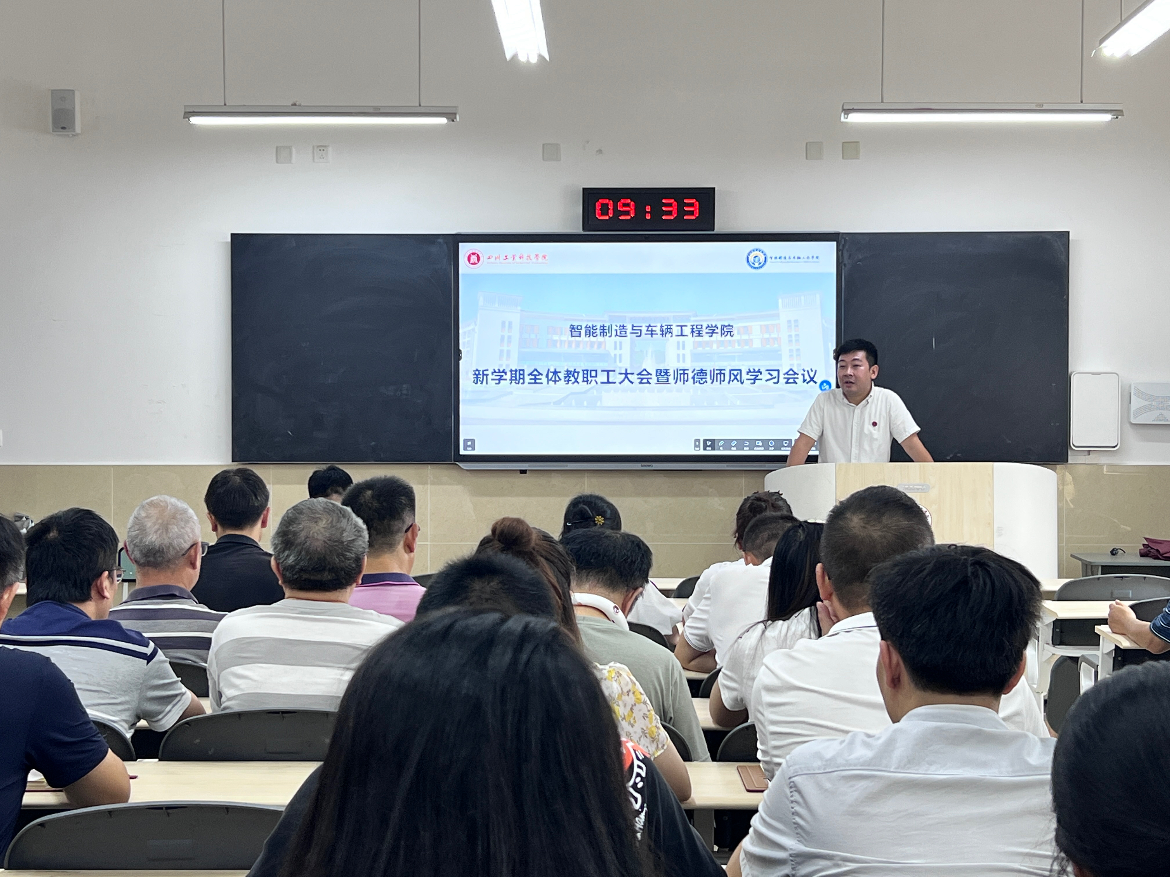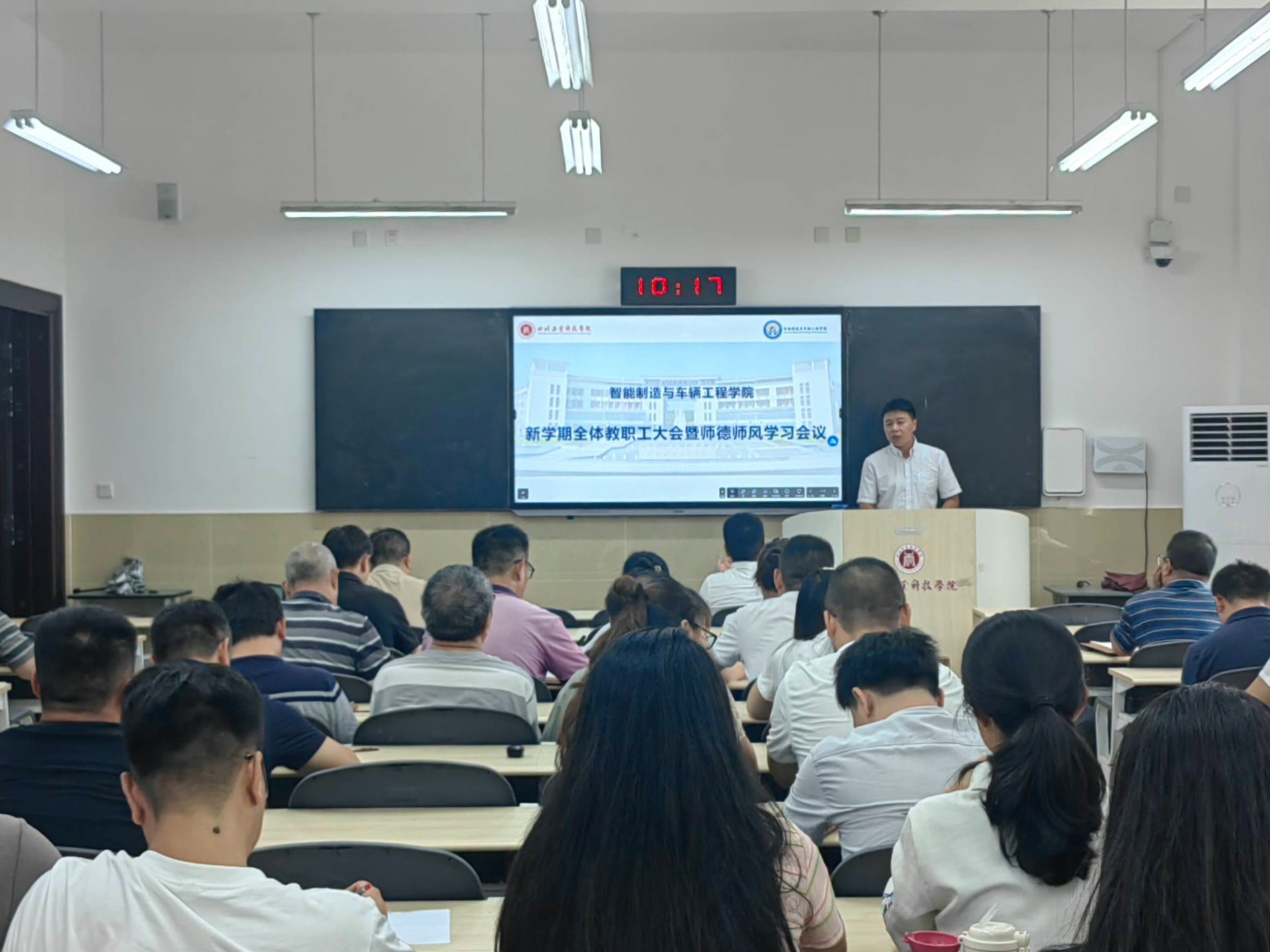 8月22日上午,智能制造与车辆工程学院在龑江学村C503教室召开新学期全体教职工大会暨师德师风学习会议。会议由学院院长袁新主持,全体教职工参加。
