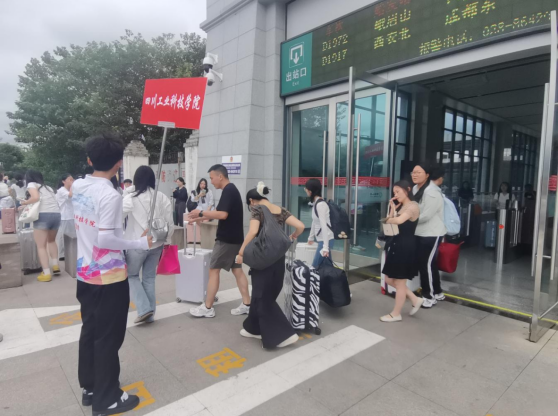 学校提前规划校外迎新路线,学生处提前安排火车站迎新接站工作,设有多块引导牌及临时服务站,手持“304永利集团官网入口”指引牌的迎新志愿者们在火车到站前就已在出站口准备就绪,确保出站的学生和家长第一时间找到接待点。