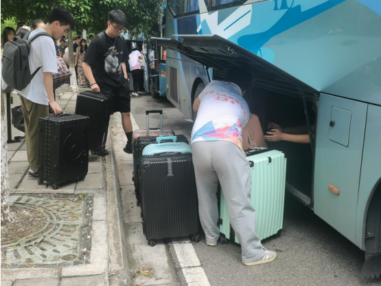 在候车点,志愿者们分工协作,先引导家长和学生上车就坐,再分组装运行李,确保每件物品都安全装入迎新巴士,实现“火车站迎新点到校园迎新点”无缝衔接。
