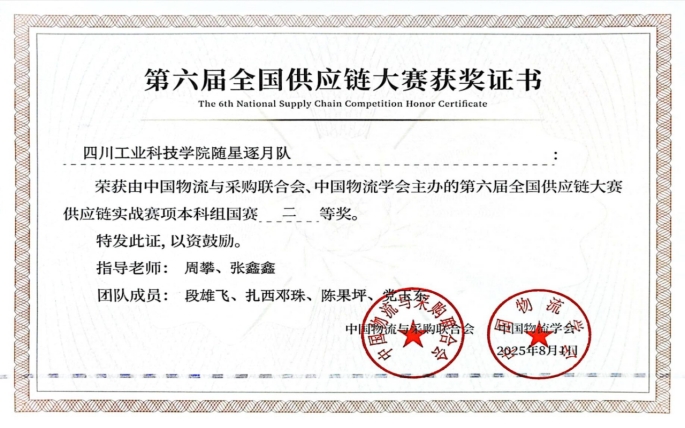 经历四个月的激烈角逐,由经济管理学院物流管理专业段雄飞、扎西邓珠、陈果坪、党玉东四名学生组成的随星逐月队,在周攀、张鑫鑫两位教师的指导下,历经校赛、省赛、国赛三个阶段,最终斩获国家级二等奖。