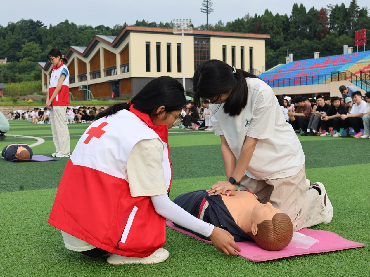 为进一步增强师生急救意识和应急处置能力,切实保障生命安全,8月26日上午和9月3日下午,学校联合德阳市罗江区红十字会在校内开展“急救进校园”科普活动,25级全体新生积极参加。