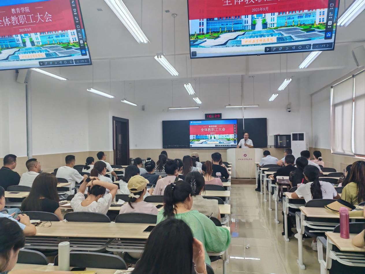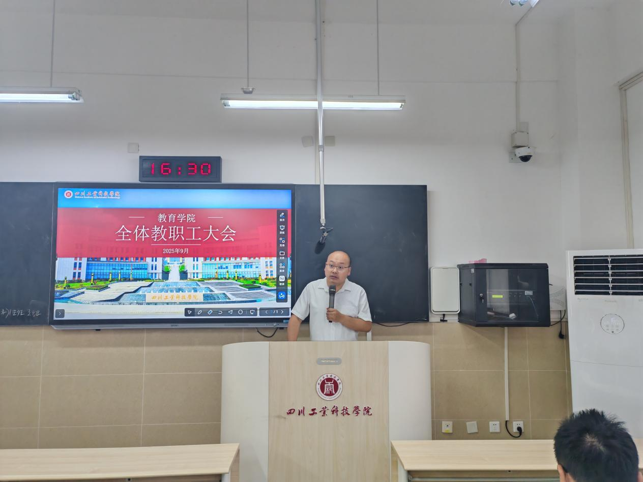 9月4日,教育学院在龑江学区D305教室召开全体教职工大会。会议由学院院长蔡林主持,学院副院长熊清明、学院党总支副书记何彬、学院副院长曾晓莉,学院院长助理李长福及学院全体教职工参加了此次会议。