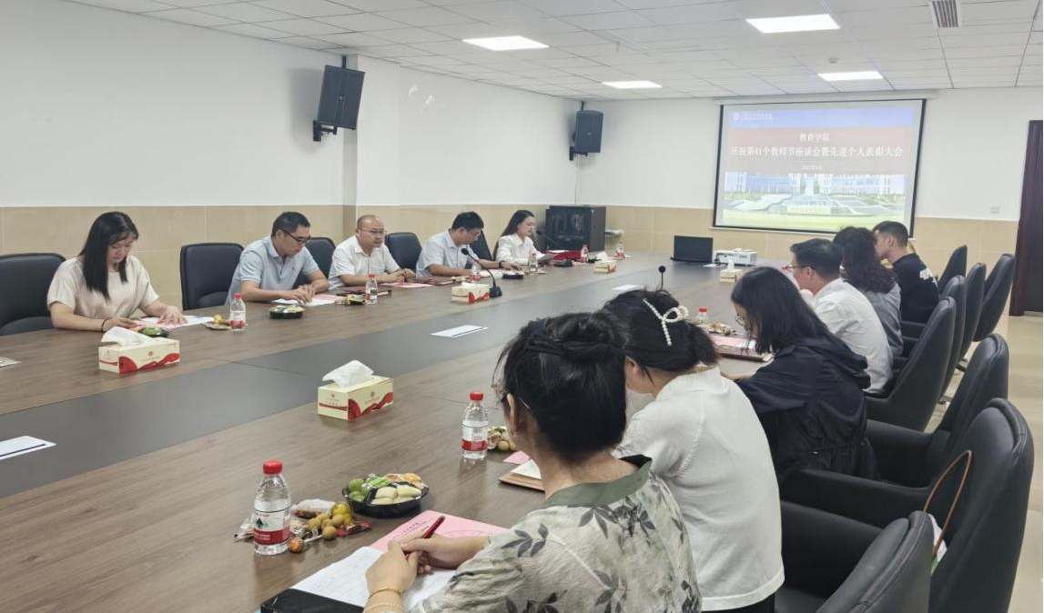 9月10日,教育学院在龑江E516会议室召开教师节先进个人表彰暨座谈会,庆祝第41个教师节。学院科级以上干部及优秀教职工代表参加会议,会议由学院综合办副主任周洪婷主持。