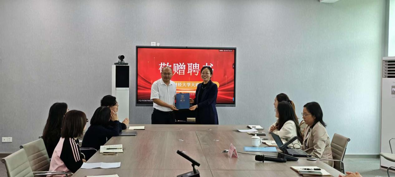 聘任仪式上,西南财经大学天府学院智能科技学院分党委书记常荣为蔡林教授颁发客座教授聘书。常荣表示,期待以此次聘任为契机,全面引进学校国家级一流本科课程与高水平科研团队的先进经验,推动两校在智慧教育、心理健康等领域开展深度合作,实现优势互补、协同发展。