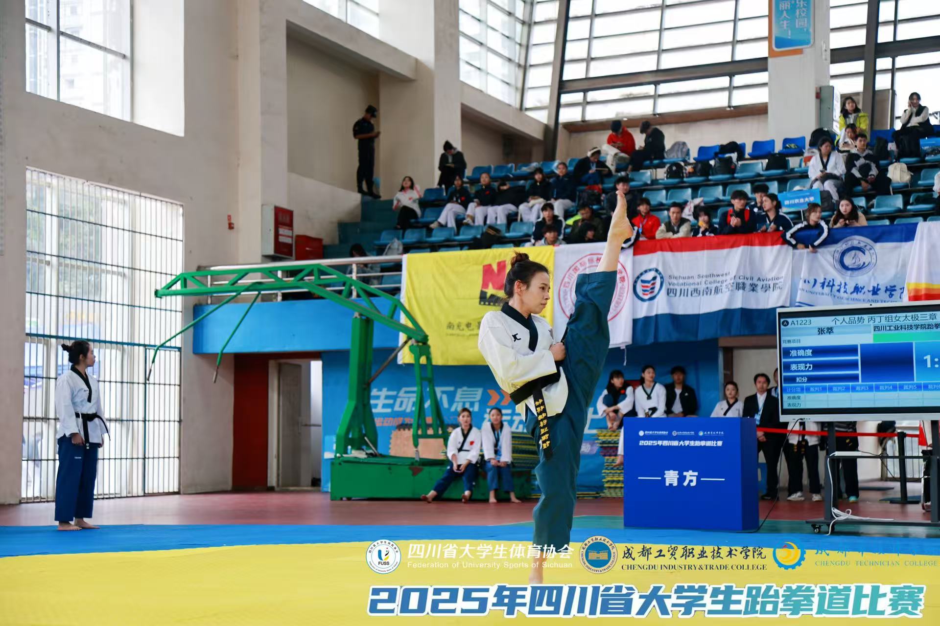 近日,2025年四川省大学生跆拳道比赛在成都工贸职业技术学院体育馆圆满落幕。学校跆拳道代表队在比赛中发挥出色,从全省37所高校、500余名参赛选手中脱颖而出,共斩获1枚金牌、3枚银牌、7枚铜牌,并荣获丙A组综合团体总分第三名的优异成绩,充分展现了学校学子卓越的竞技水平和良好的体育风貌。
