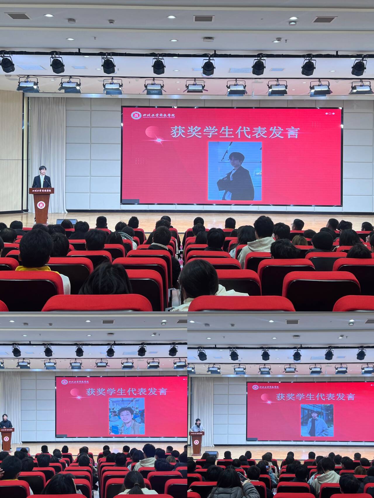 随后,袁新宣读了《关于表彰2025年参加各类学科竞赛获奖学生的决定》。2025年在全院师生的共同努力下,学院共获得各级各类学科竞赛奖项90项。其中,国家级奖项17项,包括全国一等奖3项、全国二等奖5项、全国三等奖8项、全国优秀奖1项;省级及西部赛区奖项73项,涵盖四川省特等奖2项、四川省一等奖18项、四川省三等奖49项、西部赛区二等奖1项、西部赛区三等奖2项、西部赛区优胜奖1项。特别是在中国机器人及人工智能大赛、全国三维数字化创新设计大赛、全国大学生智能汽车竞赛等重要赛事中,学院学子展现出扎实的专业功底和卓越的创新能力。