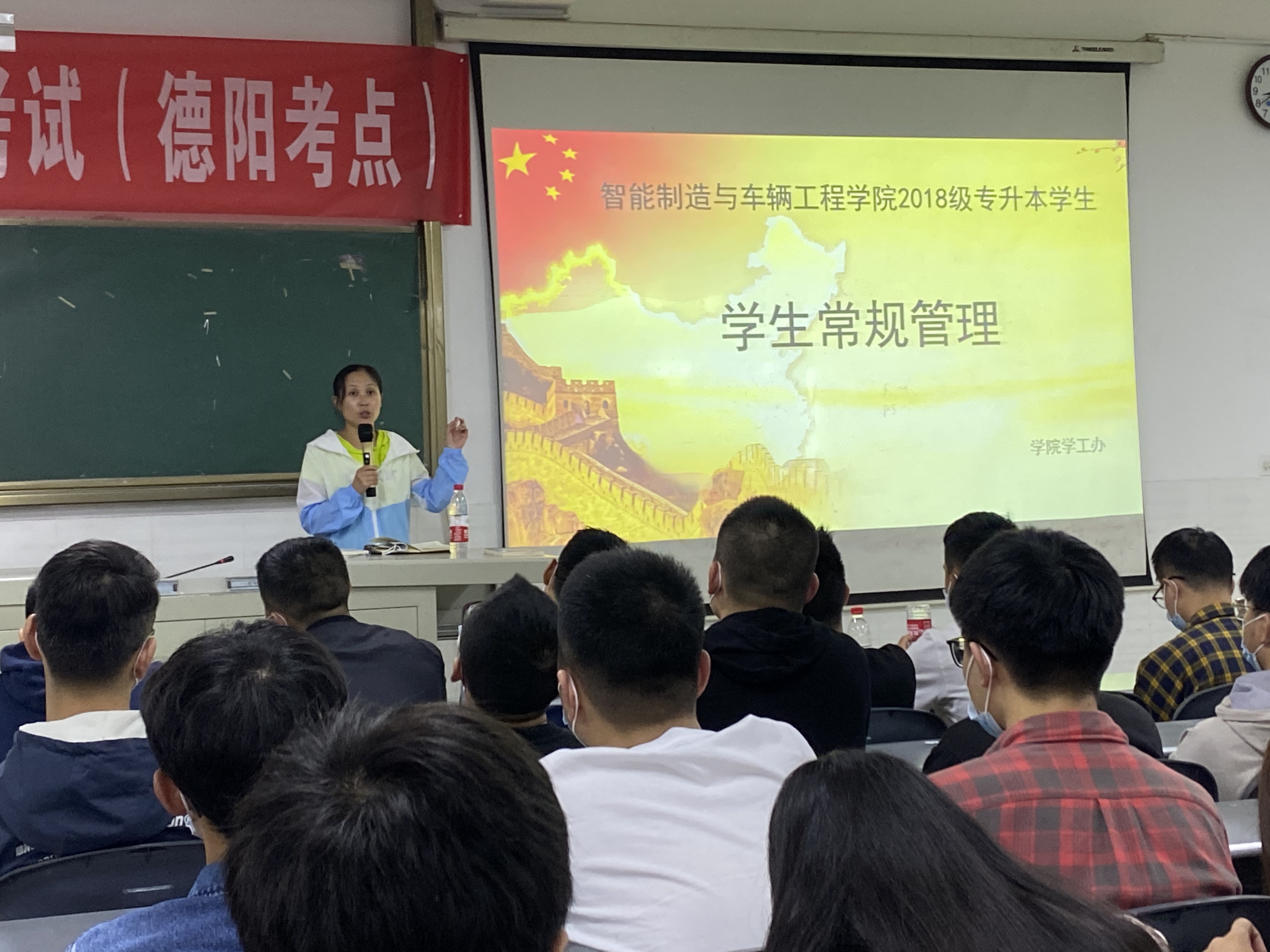 秋意正浓,叠翠流金,又是一年开学季,智能制造与车辆工程学院迎来了2018级专升本新生。为使新同学能快速融入全新的学习和生活环境,9月21日,智能学院组织召开系列新生入学教育讲座,讲座涉及 “学籍管理”、“专业宣讲”、“学生常规管理”、“实习实训”、“院长寄语”等专题。