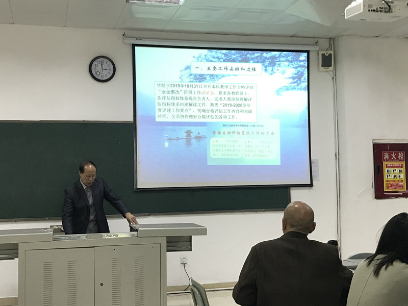 2020年10月27日下午,我院迎来本科教学合格评估“全面整改”阶段工作考核。学校本科教学评估组专家、智能学院院长、副院长、全体科级干部、教研室主任参加了会议。首先,学院院长刘国跃向各位评估专家汇报了我院“全面整改”阶段各项工作完成情况,介绍了学院本科教学亮点和特色,同时针对当前存在的问题和工作难点提出了改进思路和措施。