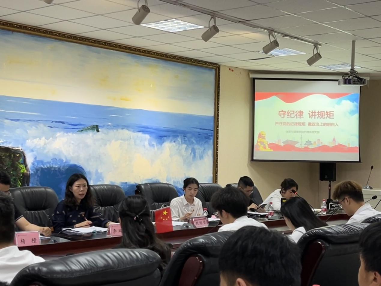 6月12日下午,体育与健康学院护理系党支部在罗江图书馆D401会议室召开“严守党的纪律规矩,做政治上的明白人”专题党课。我院护理系全体党员参与此次学习。此次党课由我院党总支副书记李双晶主讲。