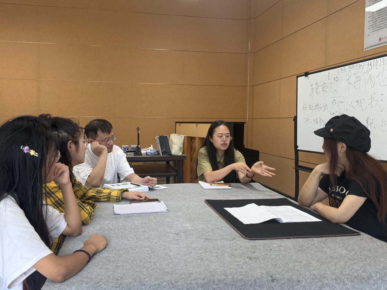 内涵式建设是本次研讨的重点。教研室积极推进"四李"书法作品展大赛相关工作,该项为期一个月的赛事已征集作品50余份,计划国庆后组织评审。刘琴强调要借助教研活动深化"能者为师"项目建设,探索智慧课程试点,鼓励教师积极申报教学成果奖和教材建设奖。针对学生考研需求,她动员教师参与考研冲刺培训。张蕊建议在书法作品展中增设创作心得分享环节,采用线上线下联动展览形式,结合智慧课程建设推进书法教学数字化资源开发。