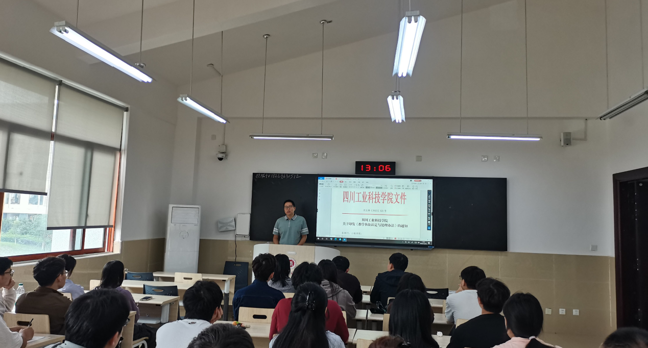 计算机系主任陈会平就开学以来教学开展工作作汇总,并组织全体教师学习《304永利集团官网入口关于印发<教学事故认定与处理办法>的通知》,对教学事故的定义、等级及分类,教学事故的认定和处理程序,教学事故的处理等内容作说明,并结合实际案例重点讲解各类教学事故的认定标准。他表示全体教师要汲取相关教学事故的经验教训,确保各类教学行为规范,坚决杜绝教学事故的发生。