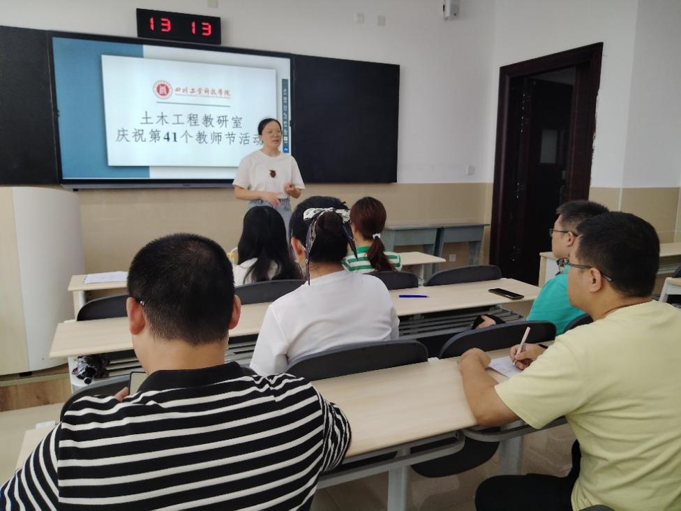 9月8日,学院土木工程教研室组织召开第41个教师节专题学习会。会议紧扣“以教育家精神铸魂强师,谱写教育强国建设华章”主题,集体学习了教育部、省教育厅及学校相关文件精神,进一步统一思想、凝聚共识,增强全体教师的育人使命感和职业荣誉感。