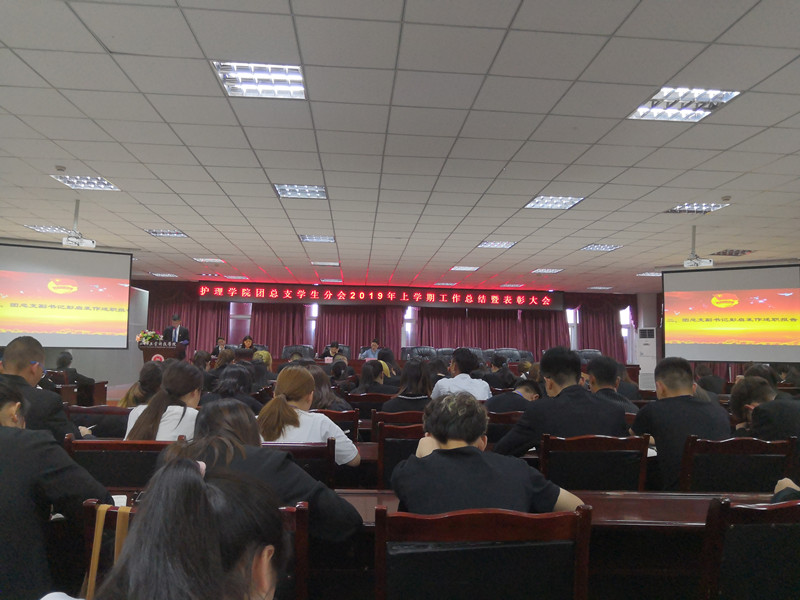 6月12日晚,护理学院团总支在图书馆408室组织召开2019年上学期工作总结暨表彰大会。校团委副书记王成鑫、护理学院党支部副书记李双晶、团总支书记李丹出席了会议。会议由团总支、学生分会秘书长余渊杰主持。