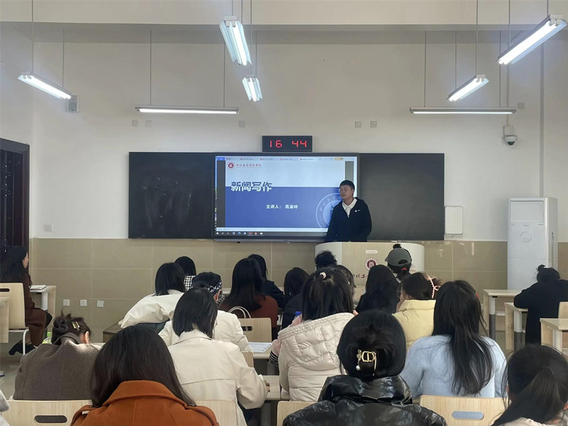 为进一步提升我院教职工的政治素养和新闻稿撰写能力,2023年11月16日下午,我院特邀学校宣传部雷耀方部长和高渝林老师在龑江校区B206教室为我院全体教职工进行以“如何写好一篇新闻稿”为主题的新闻写作专题培训。会议由学院党总支副书记李双晶主持。