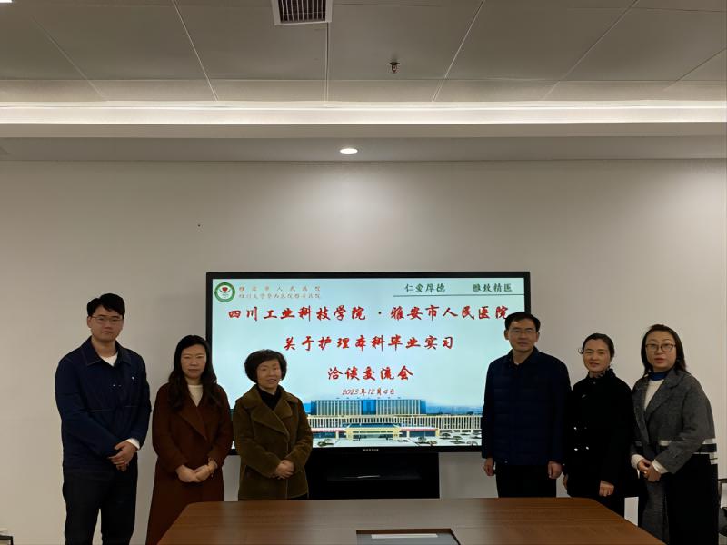为做好学生实习与就业工作,交流探讨院校与医院共建合作,12月6日,由体育与健康学院副院长刘琼碧、党总支副书记李双晶带队一行4人,前往雅安市人民医院洽谈学生毕业实习与就业相关事宜,雅安市人民医院副院长孟宪东、护理部主任胡盛琳、副主任周昀霞、李智慧参加了此次洽谈会议。