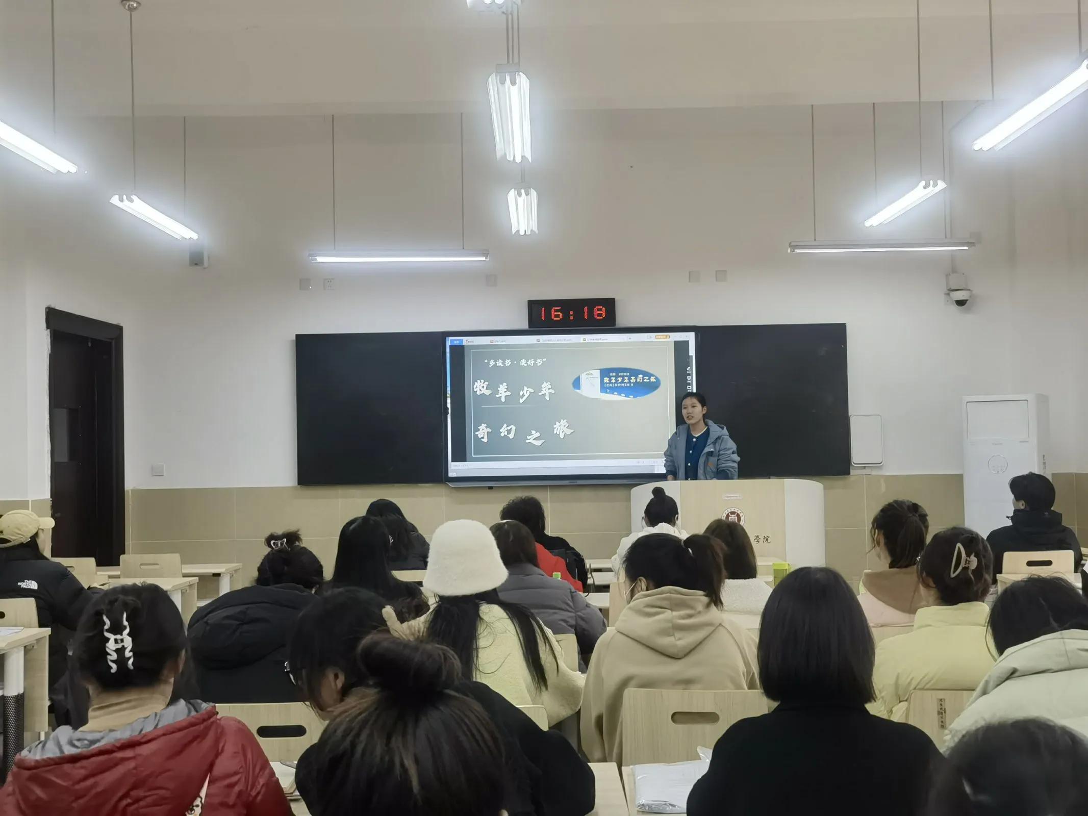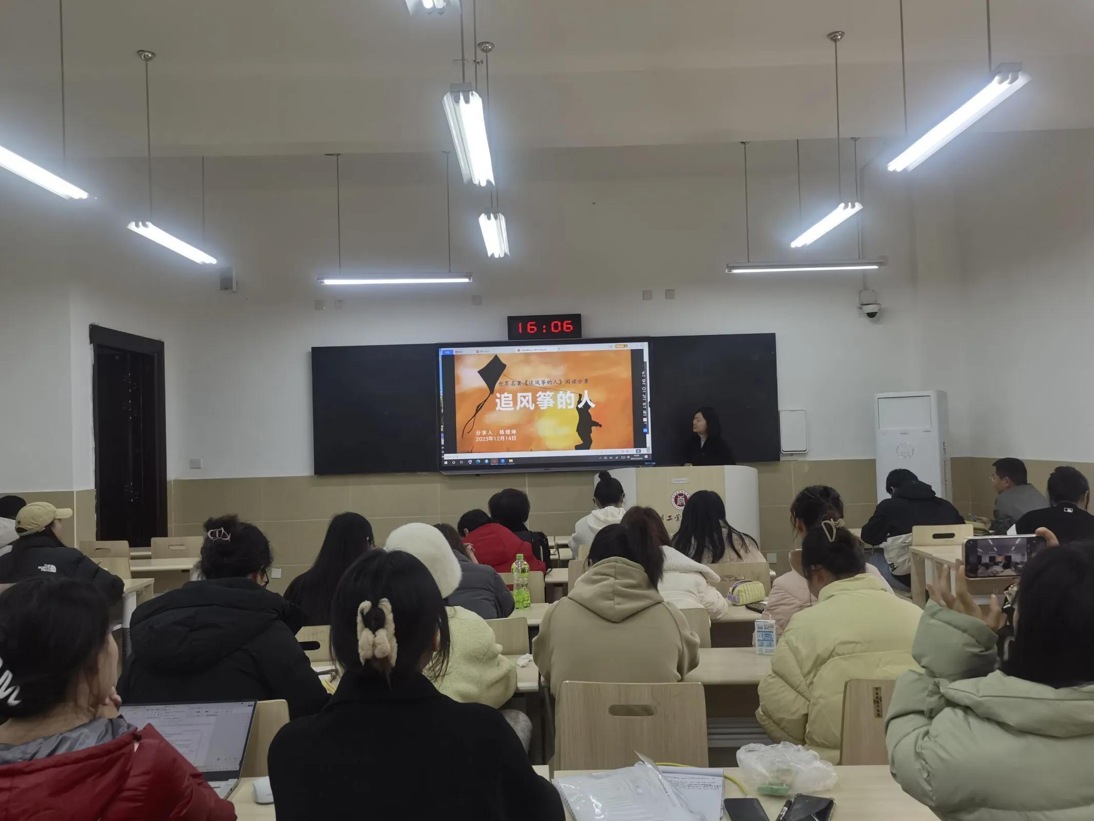 活动中,杨娅坤老师和周婷婷辅导员分别就自己最近所读书籍《追风筝的人》和《牧羊少年奇幻之旅》作出分享,结合习近平总书记对教育工作者“言为士则、行为示范的道德情操”的要求,从创作背景到作品内容,将作品主人公的优秀品质联系实际,就如何正确引导当代大学生树立正确的世界观、人生观、价值观提出探讨。