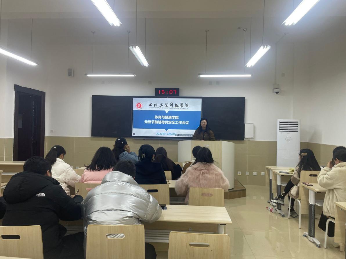当日下午,党总支副书记李双晶召开了“体育与健康学院元旦节前辅导员安全工作会议”。通报了上午寝室安全检查情况,要求有问题的寝室及时进行整改,排除安全隐患。并对节日期间的工作进行了安排,要求全体辅导员在思想上高度重视节日期间的学生安全工作,充分利用各类形式广泛开展安全教育,提高同学们安全意识,特别是提醒学生不得参加大型的集体跨年活动等。