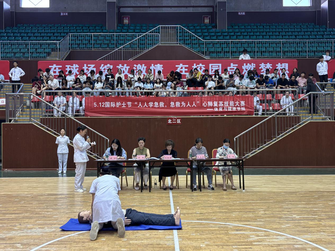 在“5·12”国际护士节来临之际,为加强对护生的急救技能培训,提高当代大学生的责任、担当意识和奉献精神,5月10日下午,我院于罗江校区体育馆顺利举办以“人人学急救,急救为人人”为主题的心肺复苏技能大赛决赛。本次决赛由林于杰同学主持,学院副院长刘琼碧、肖锐、林艳、王玉香、唐婷老师担任评委。简谣、余娇、春敏芳芳等23位选手在初赛中脱颖而出,并将在决赛中决出最终胜负。