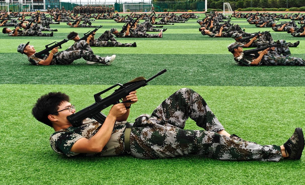 训练场上,身着迷彩服的同学们手持训练器械,以规范有力的动作完成卧倒、瞄准、匍匐前进等战术项目。他们动作标准,配合默契,展现出良好的军事素养和团队协作精神。每一个细节都彰显着新生们在军训期间的成长与蜕变。