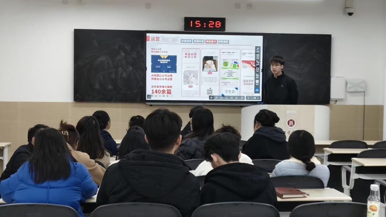 经各班级选拔推荐,共有23名学生分别参加成长赛道和就业赛道的比赛。比赛过程精彩纷呈,23名不同专业、年级的同学结合自身专业和个人优势,展示自己对未来的规划及对职业目标的追求,最终,经评委打分推荐陈军雨、陈柳衡等四名同学进入校级职业规划大赛。