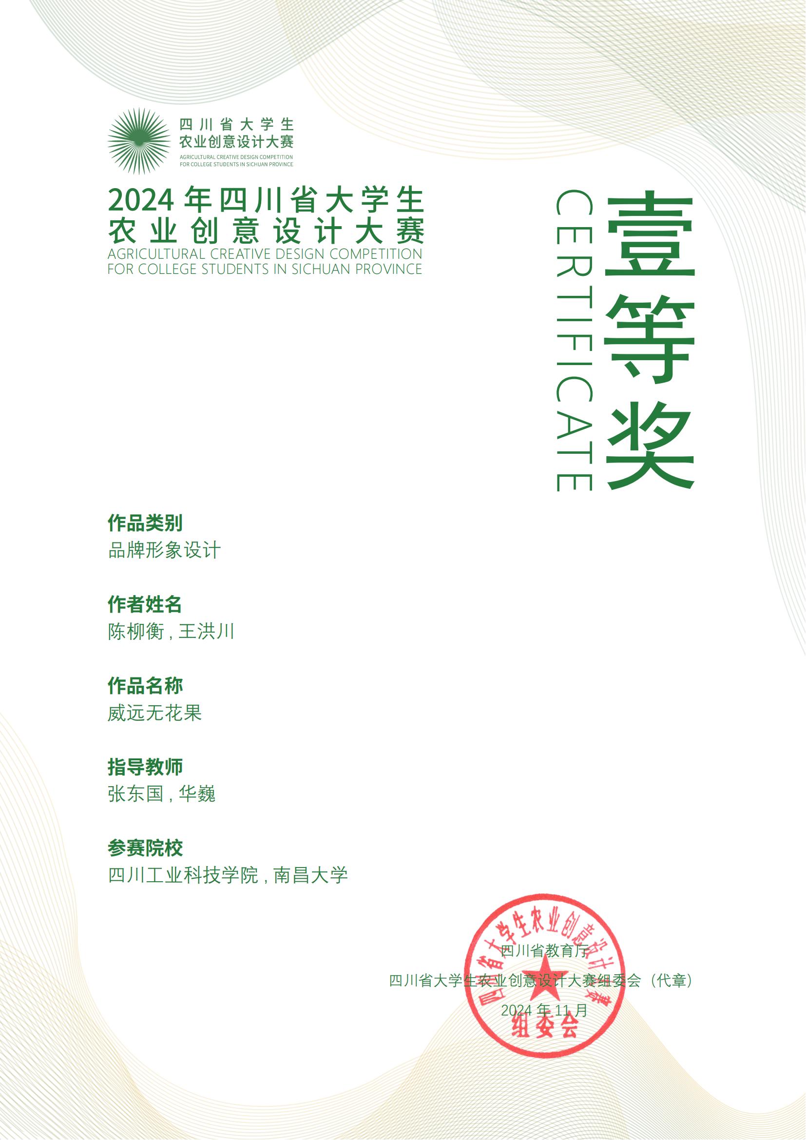 近日,由四川省农业农村厅、四川省教育厅主办,四川农业大学承办的2024年四川省大学生农业创意设计大赛落下帷幕,建筑工程学院学生在本次比赛中斩获省级一等奖2项,二等奖5项,三等奖17项,学院教师张东国、杨越获评“优秀指导教师”称号。
