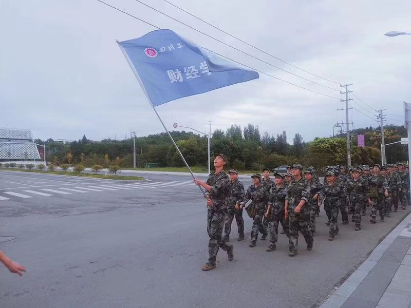 9月11日上午,19级新生军训进入收尾阶段,财经学院新生们在足球场集合,准备进行学校组织的天马山野营拉练。