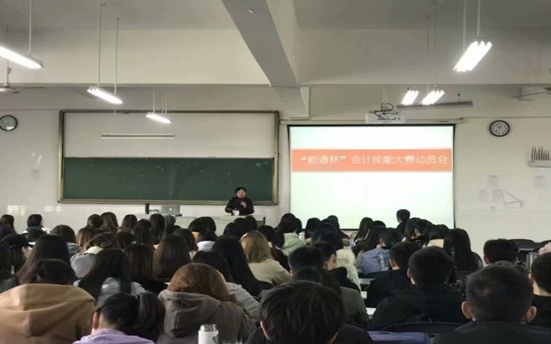 会议伊始,卢淑梅提到了当今财经专业的现状和发展趋势,她希望财经学子们能够积极参加各种比赛,抓住锻炼自己、提升自己和展示自己的机会。在比赛中收获知识,总结经验,不断进步。随后,马丽蓉上台向同学们详细的介绍了“新道杯”会计技能大赛的情况及大赛规则。会计技能大赛是化理论知识为实践运用的比赛,也是提升自己专业水平,提高毕业含金量的一次机会。