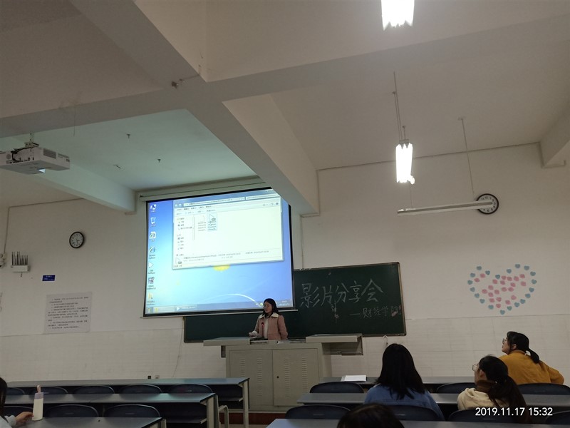 11月17日下午,财经学院在毓秀104开展了《中国合伙人》影片分享会。本次活动由17级财务管理1、2班负责,活动参与此次分享会的有财经学院推普老师苏王钰、财经学院推普员吴刘密,以及财经学院各班学生代表。