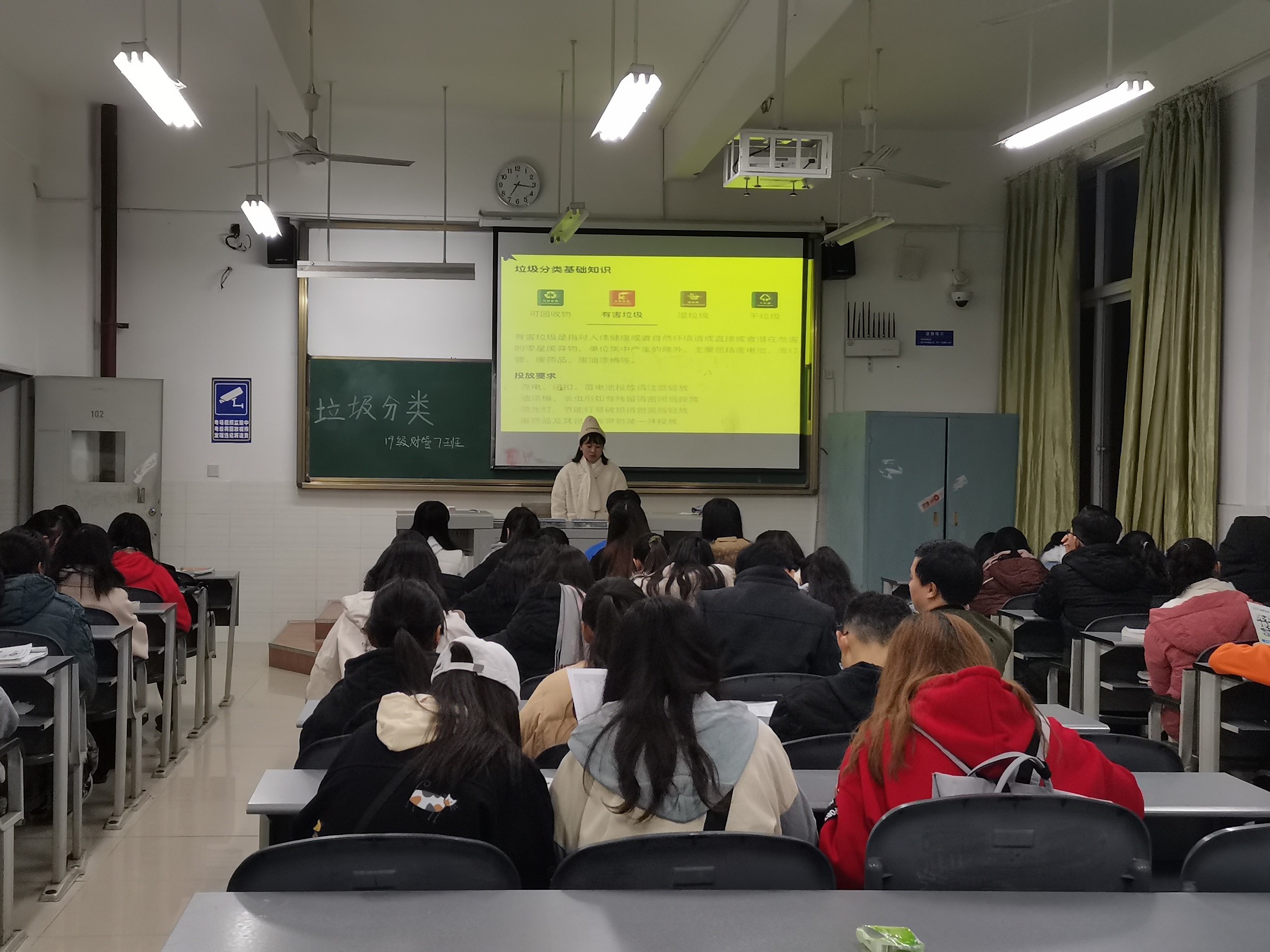 12月25日晚,财管7班于毓秀102进行了有关垃圾分类的主题教育,全班同学积极参加。