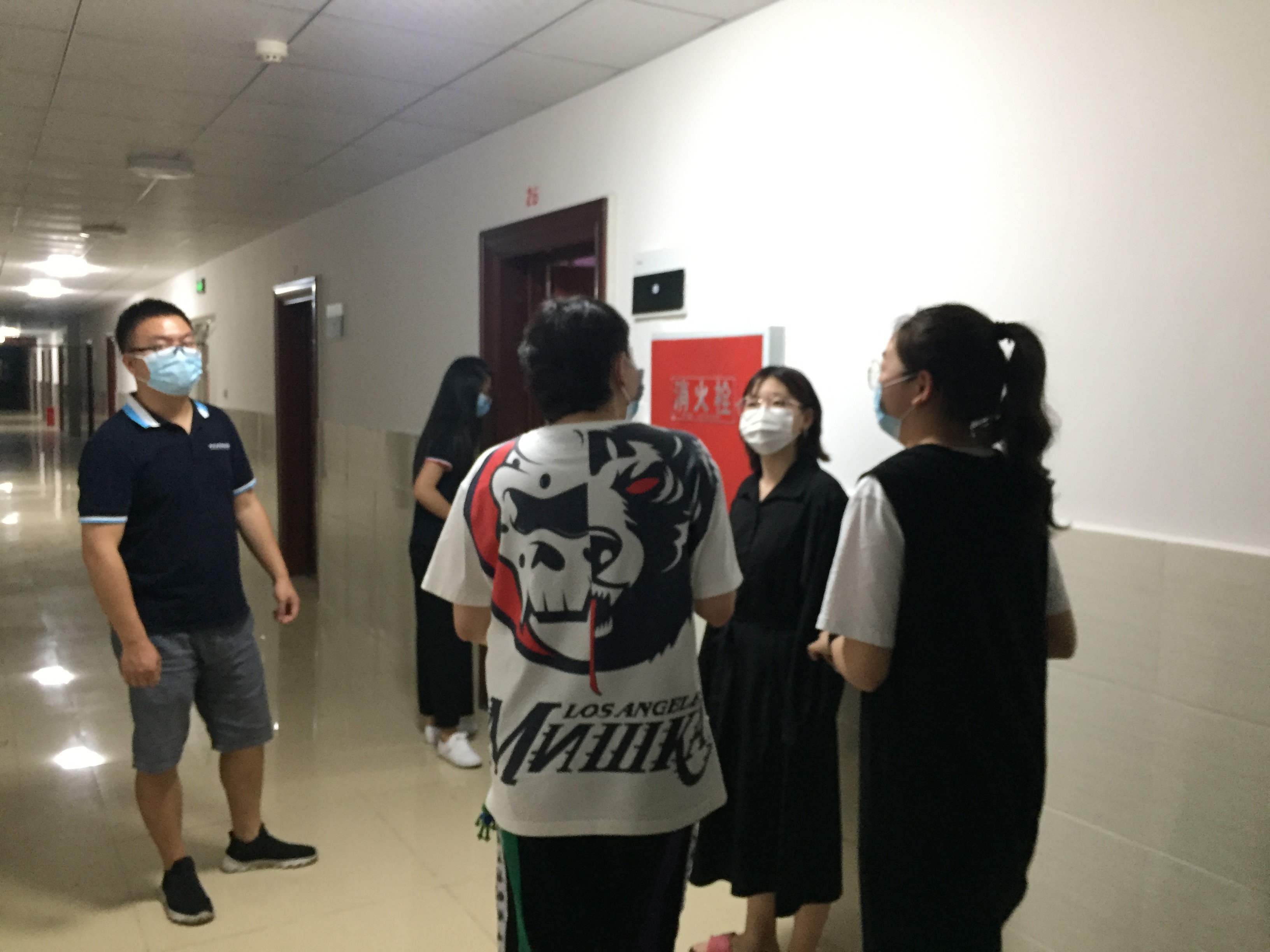 王院长等走访了学生入住的公寓,几位领导和老师详细询问了同学们的基本情况和生活状况,与同学们进行了亲切的交流。老师们按寝室逐个探访,查看宿舍设施完备情况、询问学生相关意见建议,并向学生们传达疫情期间上课、学习、生活需要注意的事项等。此行的目的,除了更好的传达学校疫情期间防控的注意事项,更多的是向学生们传达来自学院领导和老师的关爱,使同学们静下心来,认真的学习生活,在做好防疫的同时,不耽误学业。