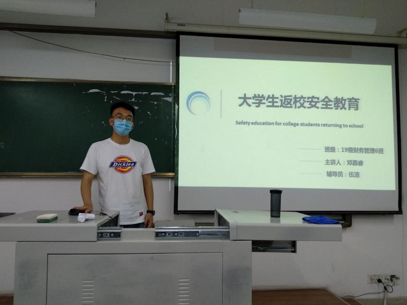 6月7日晚,为进一步普及疫情防控知识,提高广大学生的自我防护意识,保障学生的生命安全,筑牢校园疫情防控线,19级财务管理6班在钟灵209教室开展“返校安全教育”主题班会。本次班会参会人员有辅导员伍清、辅导员助手杜薇及6班全体学生。