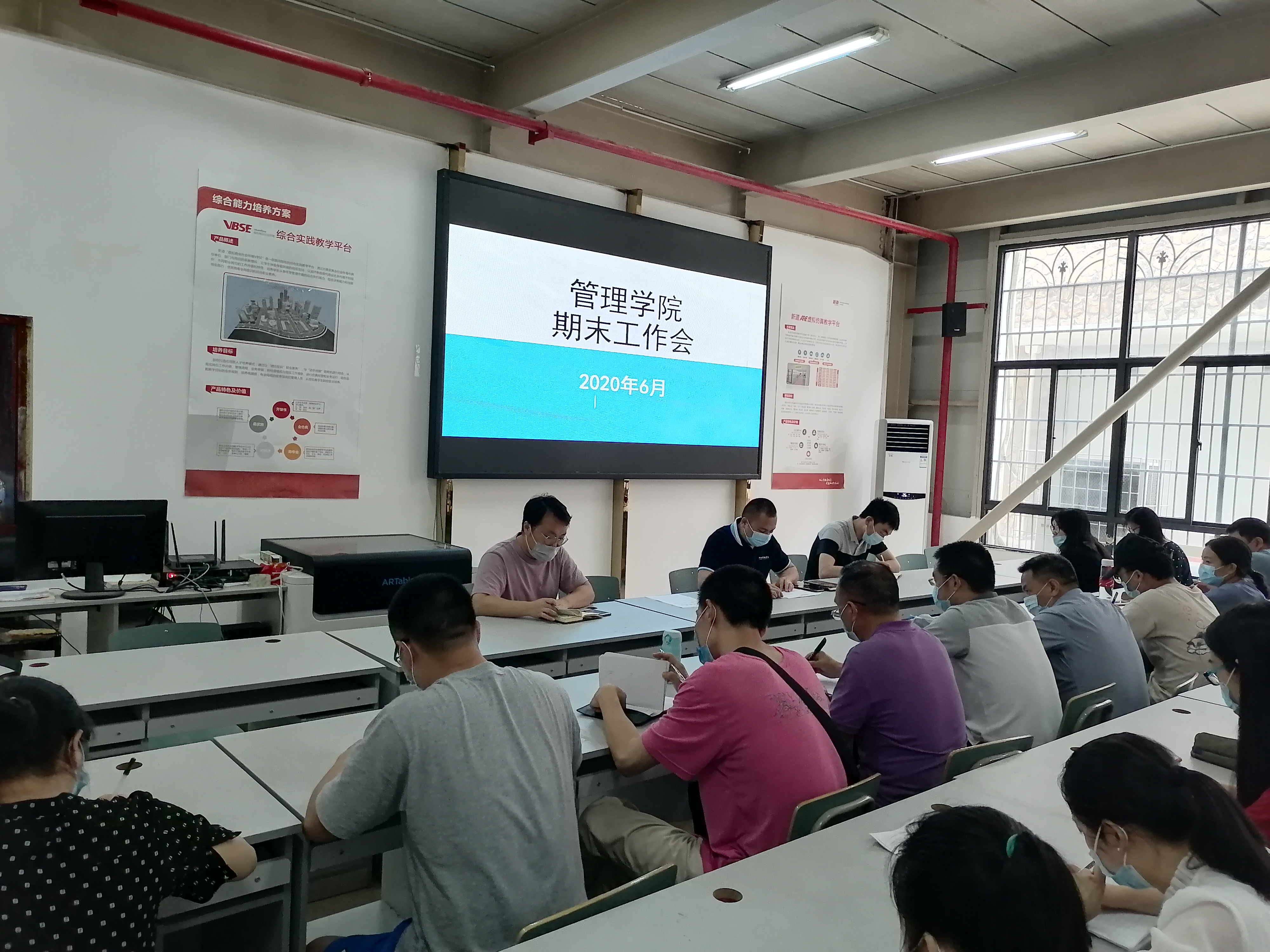 2020年6月19日,管理学院在ARE实验室召开了学院全院大会,管理学院全体教职工参会。本次会议由王进院长主持,会议内容分为学生工作、教学工作、就业及创新创业等几个方面。
