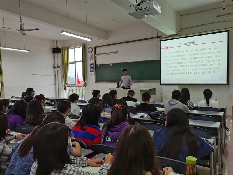 本次入学教育包含两个部分:学分管理和专业教育。在学分管理这一板块,郑建就学校的学分管理规定、财务管理专业学分介绍以及如何获得学分三个方面做了介绍。在专业教育板块,就专业基本情况、未来发展方向以及专业学习建议三个方面进行了讲解。