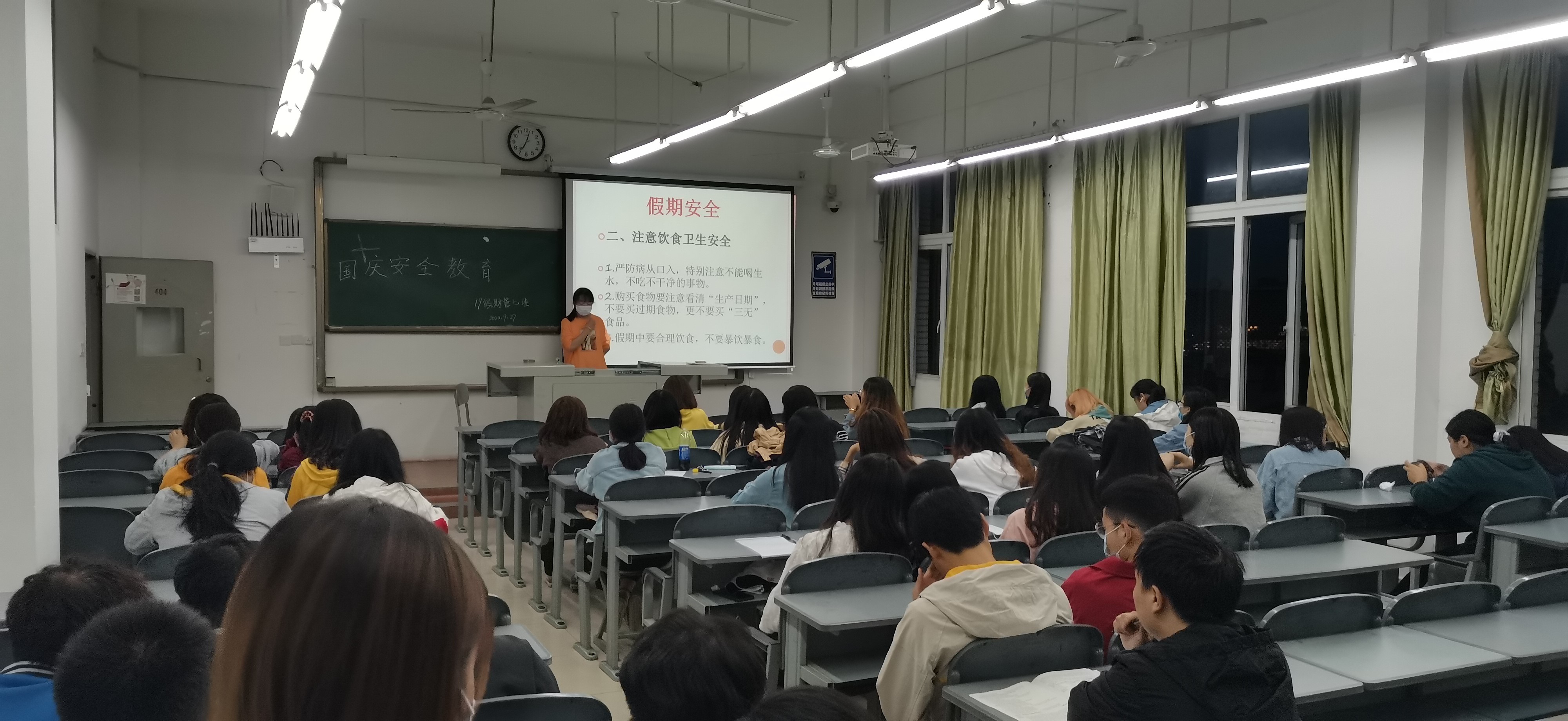9月27日晚,财管7班于钟灵404举行了主题为“国庆安全教育”的主题班会,本次班会的主持人为雷丽琦。