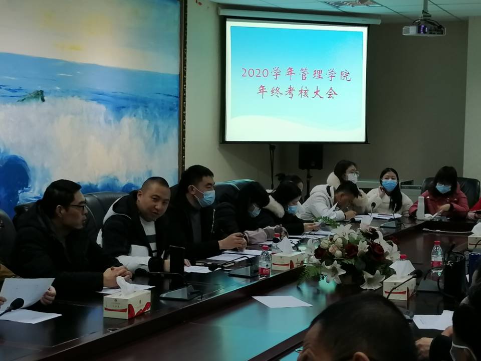 2020年12月24日晚19:00,管理学院在图书馆401会议室召开了全院期末考核大会,本次会议由王院长主持,全体教职工参与。