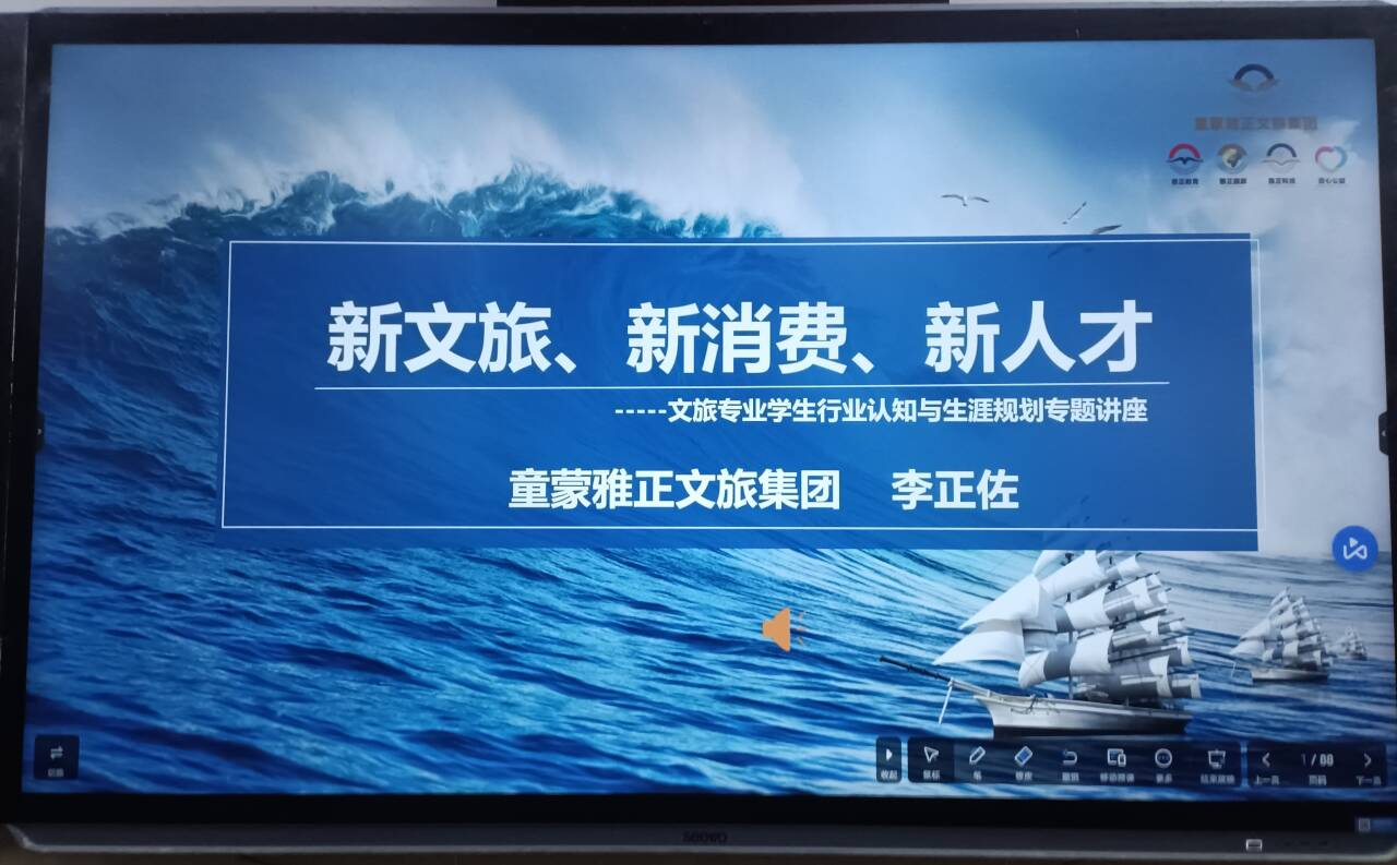 李正佐凭借其在文旅行业的丰富经验,以2024年文旅行业的热门词汇为切入点,详细介绍了特种兵旅游、城市漫游、寺庙旅游等新兴业态,为同学们打开一扇了解行业发展的窗口。他特别提到了“文旅+科技+国风”和“文旅+演艺+东方美学”等创新模式,这些模式不仅为文旅行业注入了新的活力,也为同学们的职业规划提供了新的思路。