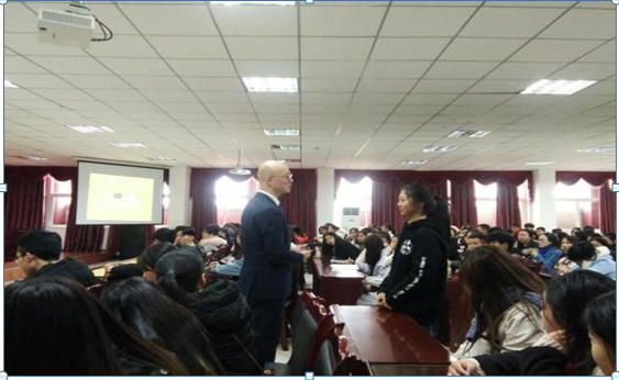 首先,戴总以互动的方式简单的了解了同学们选该专业的初衷,带领同学们进入旅游专业的领域,又以旅游行业发展各阶段大数据的分析说明了旅游专业的发展方向。其次,戴总还向大家分享了他的职业经验和服务行业的经典案例,引人深思。借助丰富的图片,戴总为大家展示了各个旅游景区和酒店建筑的风格特色,深入浅出地剖析了我国各地著名景点发展趋势和各酒店服务理念的走向。最后,戴总寄语同学们在学习的过程中不要轻言放弃,树立一个小目标,然后一步一步地走进它,使大家感触颇深。