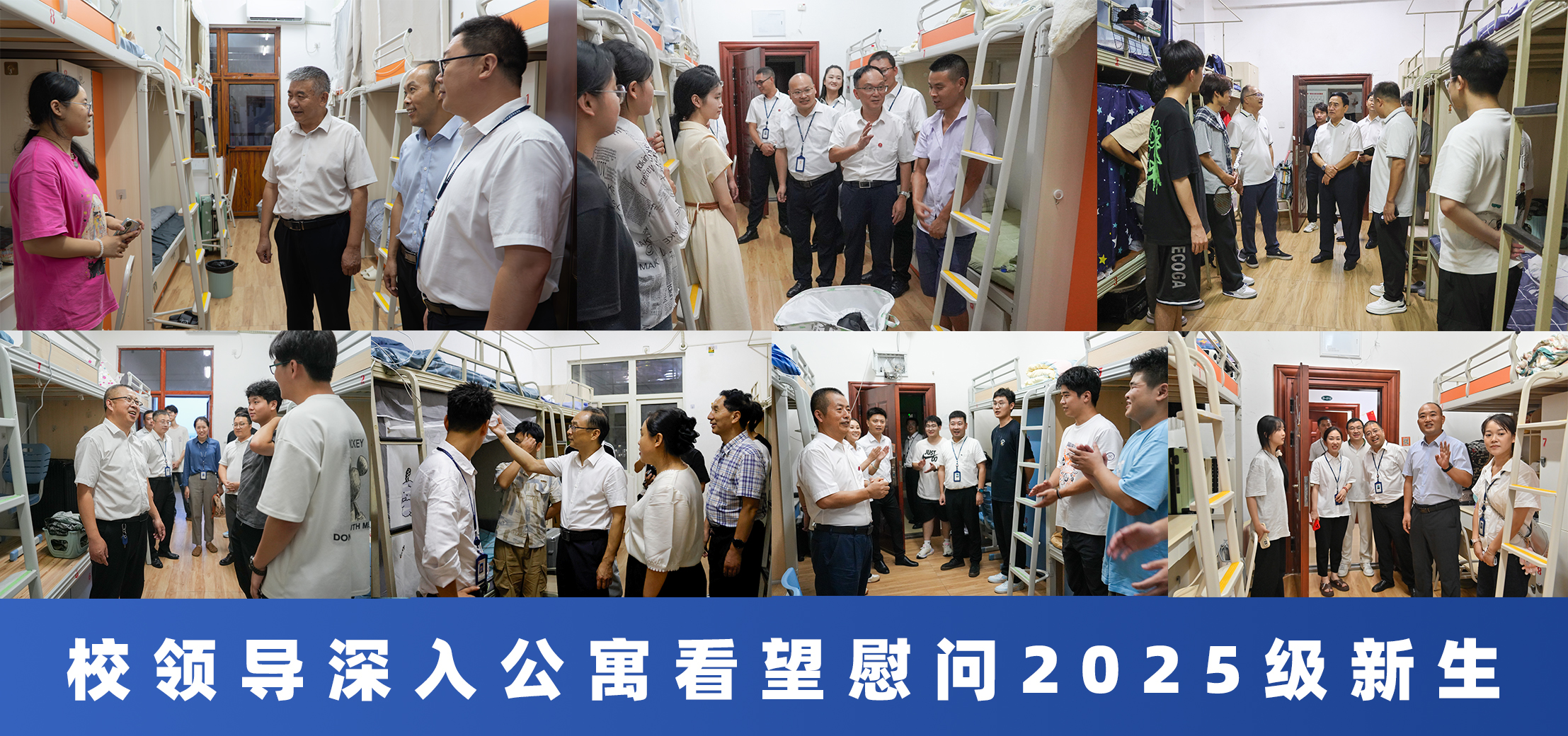 为了解2025级新生入学后的适应情况,帮助新生更好更快地融入新环境,8月27日晚,校领导带领职能部门、各二级学院负责人深入新生公寓亲切看望刚刚入学的2025级新生,为他们送去学校的诚挚关怀与温暖问候。