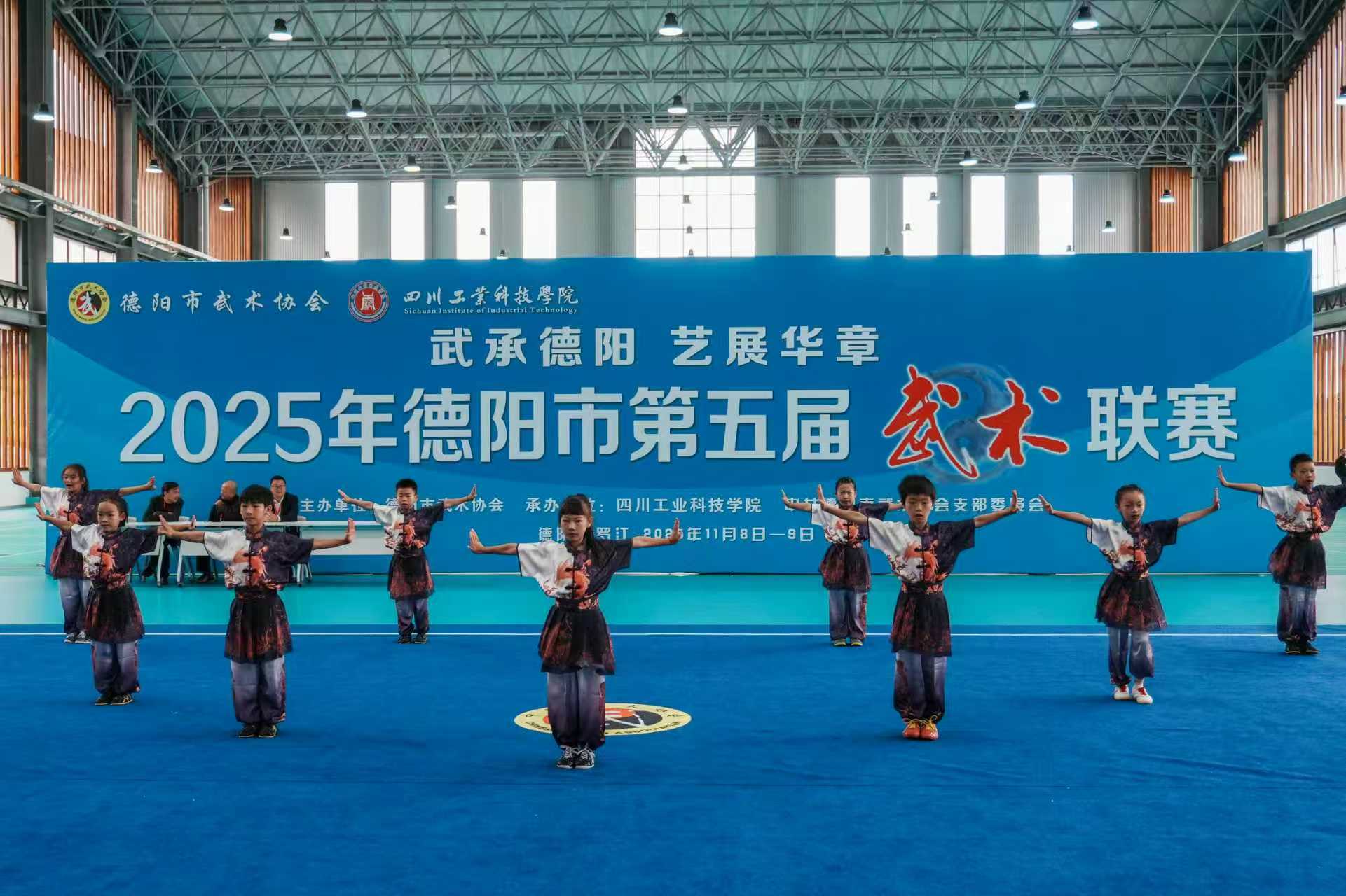 11月8日,2025年德阳市第五届武术联赛在学校举行。来自全市各承训单位的18支队伍,近400名选手参加了比赛,共同角逐“武术传承奖”“优秀团队奖”“德阳市武状元”等10余个奖项和荣誉称号。