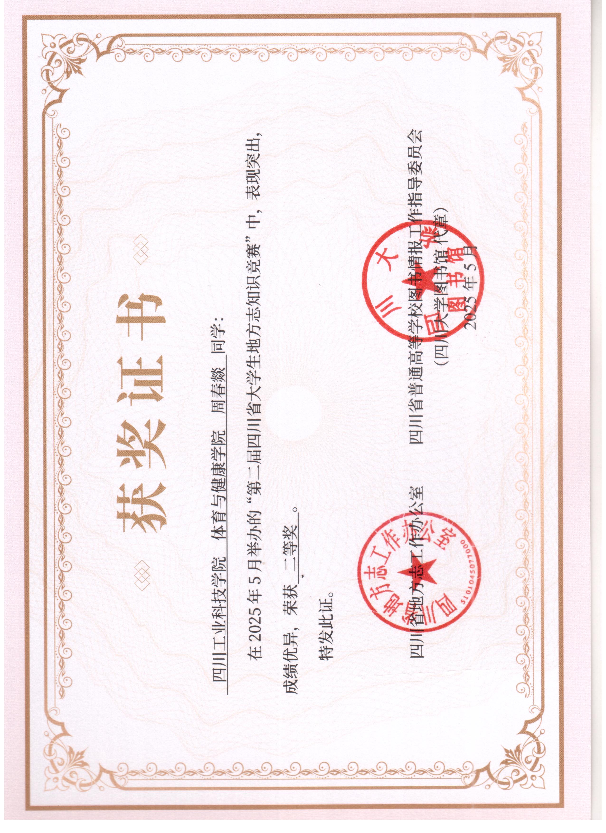 学校学子在第二届四川省大学生地方志知识竞赛中喜获佳绩