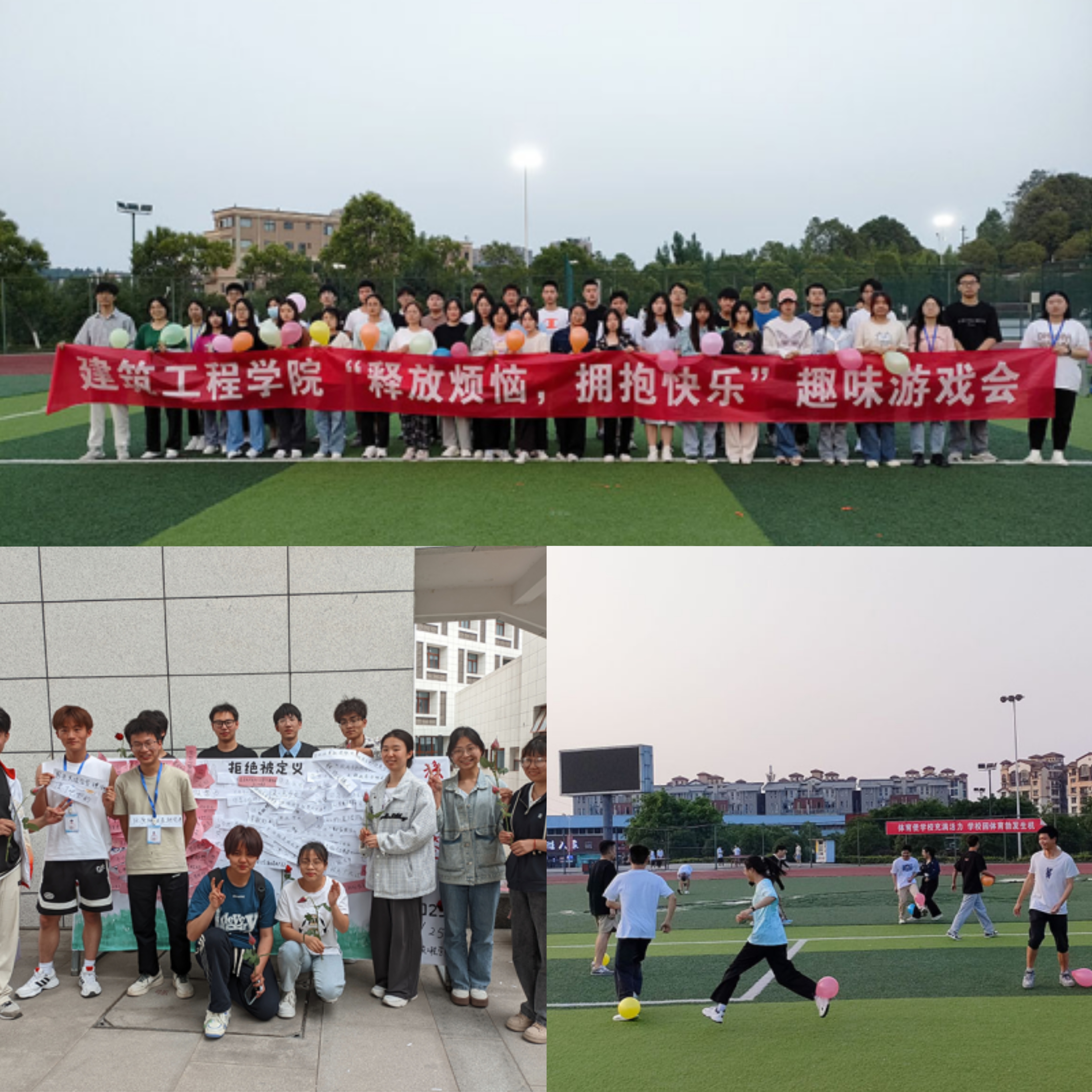 建筑工程学院创新活动方式方法,于5月24日在学校足球场举办了“释放烦恼,拥抱快乐”趣味游戏会,将心理健康教育同情绪释放球、欢乐转圈圈、你划我猜等三个活动相融合,在欢快轻松的氛围中帮助学生健康成长、全面发展;于5月25日在龑江图书馆前开展了“撕掉标签,拒绝定义”主题活动,同学们在撕标签和领礼品中,增强了心理保健意识和心理健康素养。