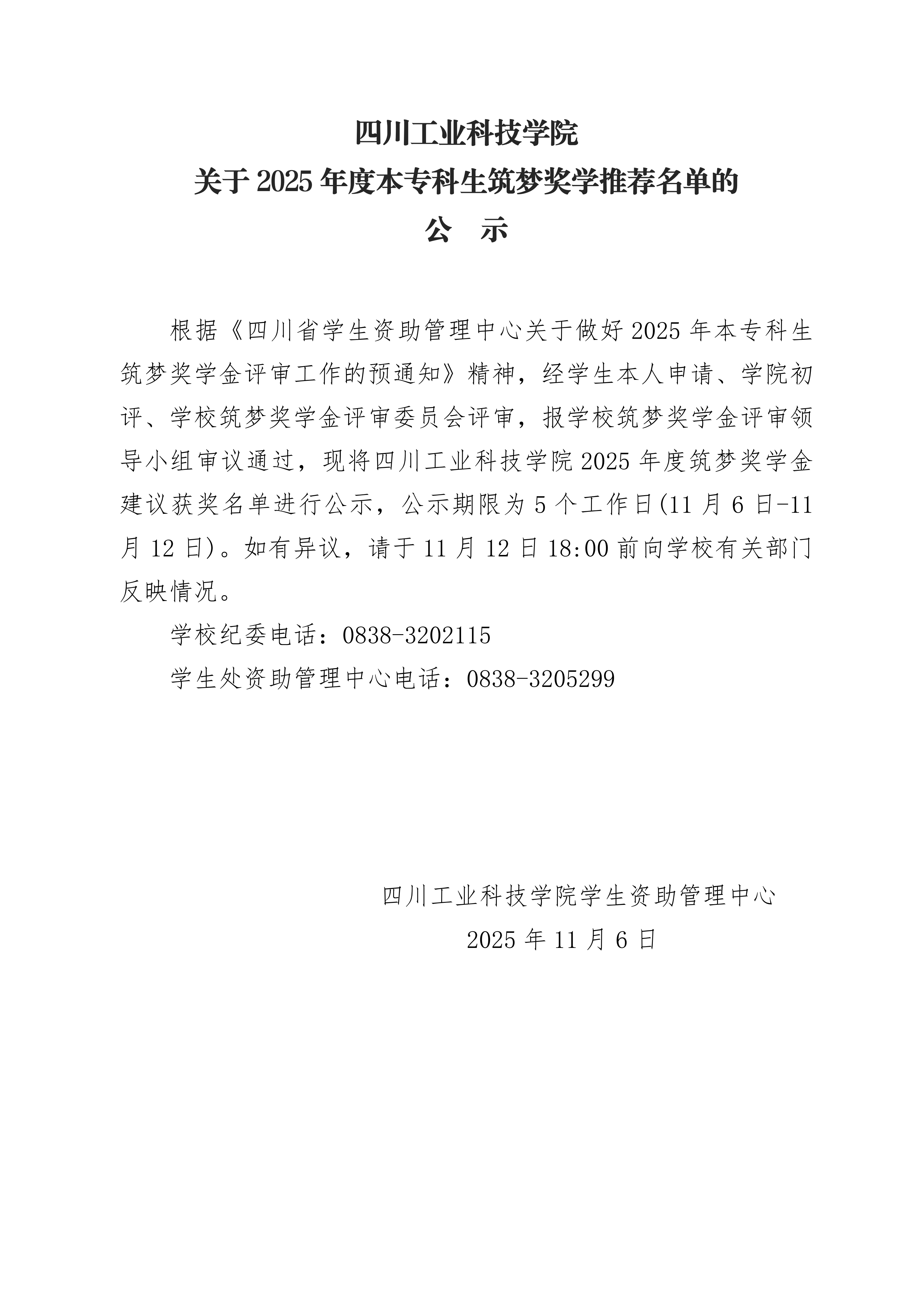 关于2025年度本专科生筑梦奖学金推荐名单的公示