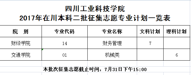 本次征集志愿的院校、专业为本科第二批录取未完成计划的部分,有关院校、专业及名额见附件。